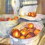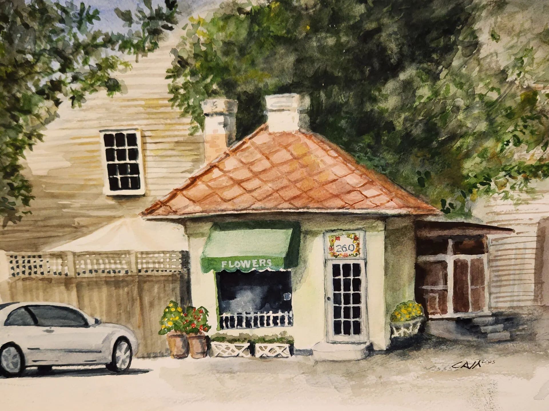 I am moved by nature and history.  I love beaches, live oaks with hanging moss, the colors of old farmhouses and churches, flowers and skies.   Most of my work from my early painting to now is representational of these images, presented in transparent watercolor.  I enjoy the demanding timing of watercolor and the translucence of the paint.  My watercolors are inspired by rural history, architecture, organic shapes and the past era of our agrarian society