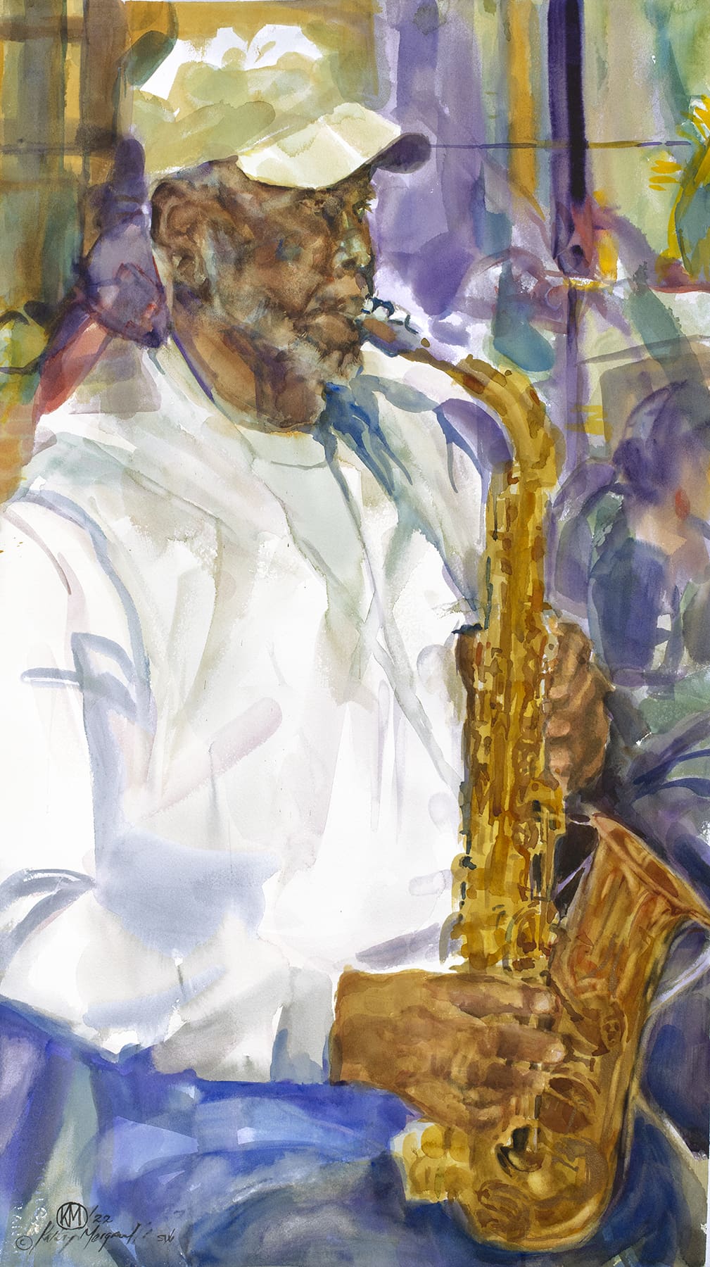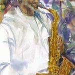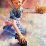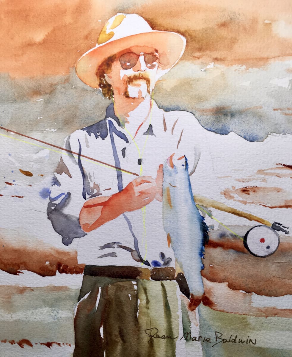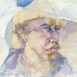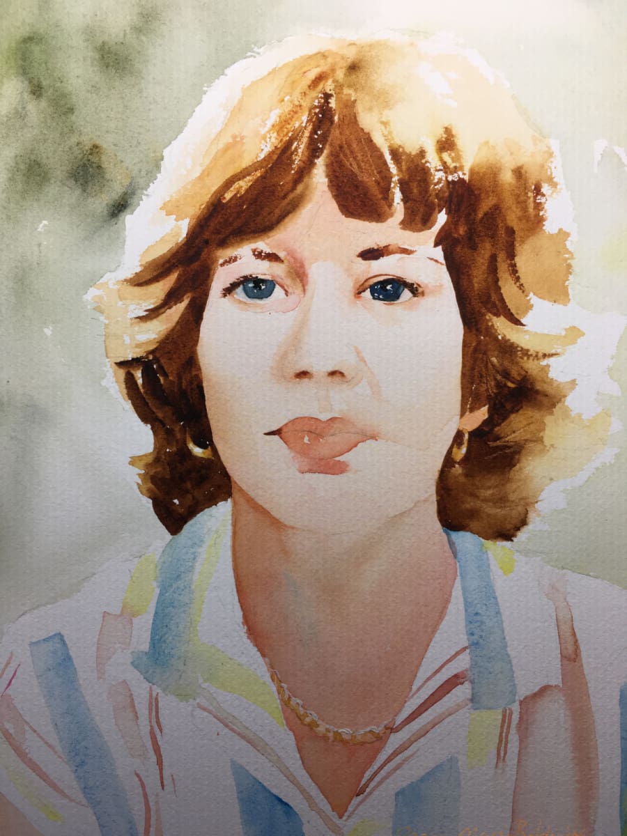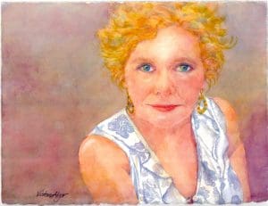From Jean Baldwin: Although I paint still life and landscapes, nothing captures my attention as much as doing a portrait. I am a self-taught artist. I learned watercolor mostly by reading and practicing from books by Charles Reid. I love his loose, watery style and his direct painting technique. I like to guide the paint, but I don’t want to micro-manage it. I like to see what the paint and water will do on their own. I aim for a mixture of hard and soft edges and lost and found edges. I like the paint to mix on the on the paper instead of just on the palette. I think that this is what watercolor is all about. I have painted in watercolor for thirty years and I also am an accomplished charcoal artist. I think both of these mediums offer the artist the freedom to express the subject in strong, but subtle ways. I am available for portrait commissions, and I am also available to teach and can be contacted at (828) 926-9857.