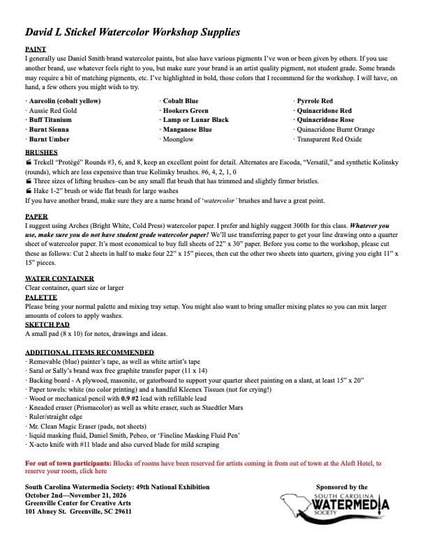 A Three-day Watercolor Workshop with David Stickel